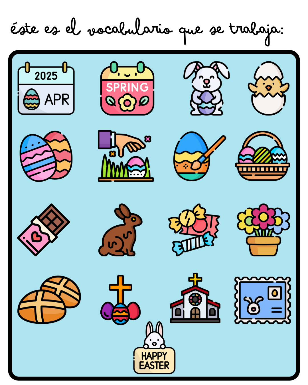 Flashcards para trabajar el vocabulario de Pascua en inglés. Recurso Digital.