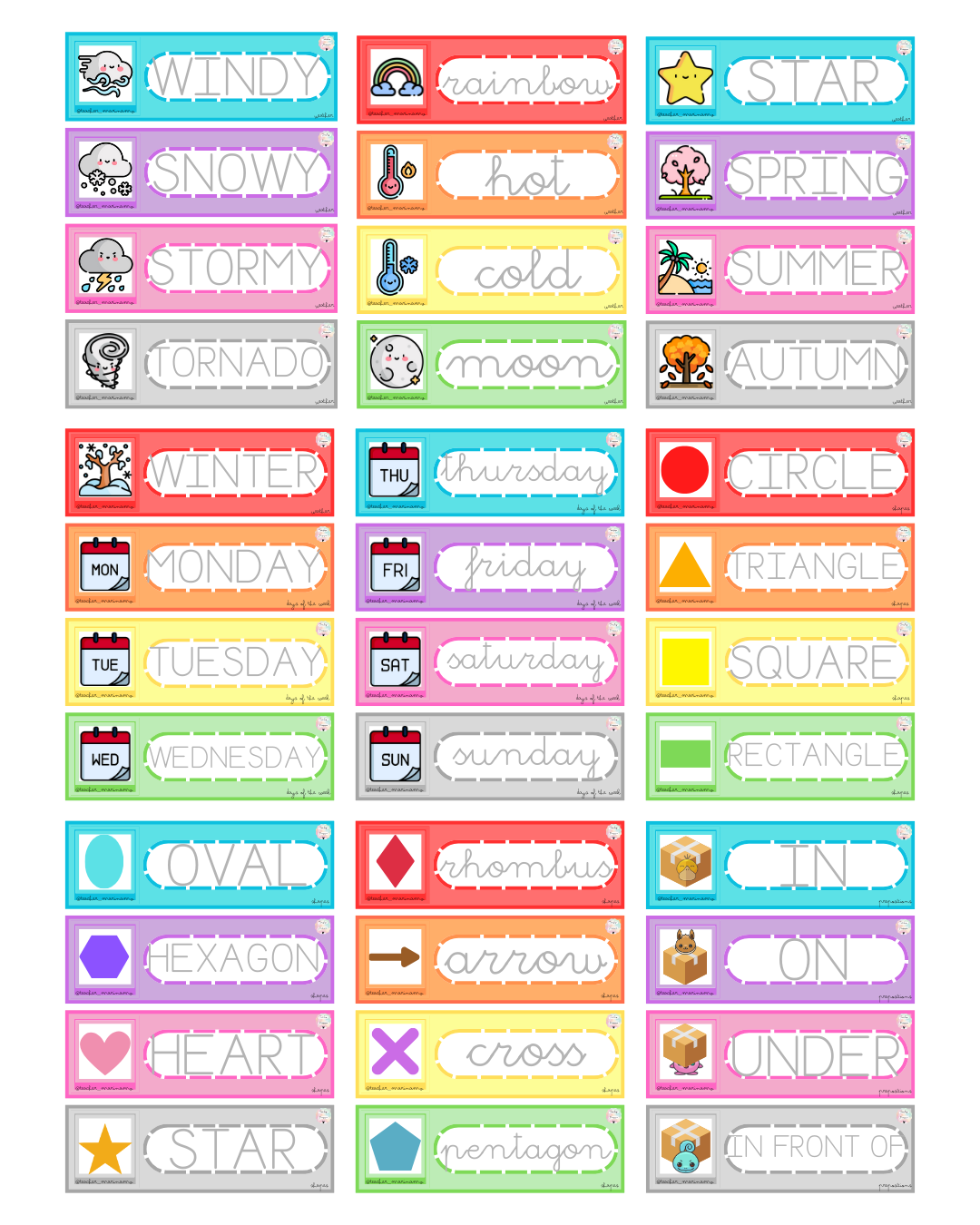 Vocabulario básico: weather, seasons, days of the week, shapes and prepositions.